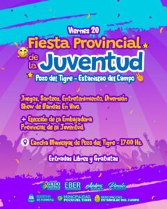 20 Sep Este viernes 20 de septiembre de 2024 se vive la Fiesta Provincial de la Juventud en Pozo del Tigre
